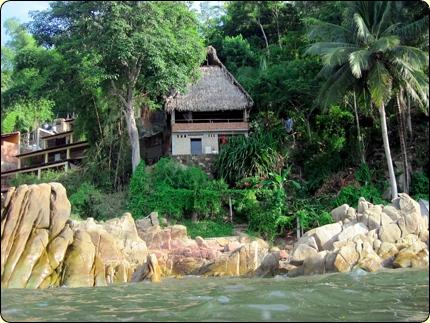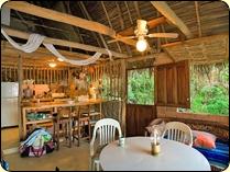 This private home is located just off the main trail and overlooks the big beach and lagoon, with a sweeping view of Yelapa Cove. Watch humpback whales migrate south from the comfort of your queen-sized bed, or take private steps to the beach for a refreshing swim. Hot water, full kitchen, and sleeps four. | ||||||||